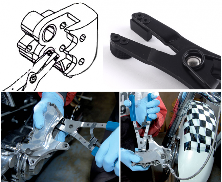 Extracting the piston fixed from the disc brake caliper. Since it has a locking mechanism, it can hold it with the piston hooked. Total length: 240 mm. Material: Carbon Steel