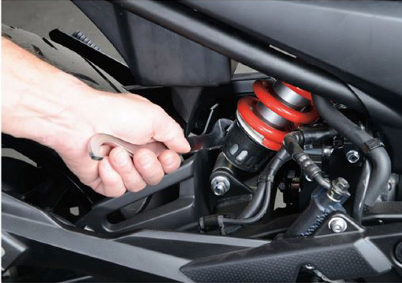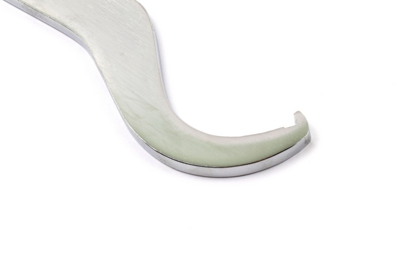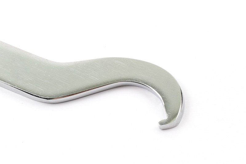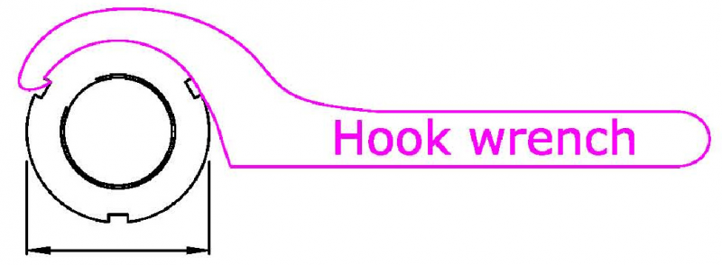 You locate the hook on the slotted round nut and move it in one direction or the other. Also suitable for nuts on steering head bearings. Size: φ60*φ65 Total length: 270mm, Thickness: 4.5mm Surface treatment: mirror