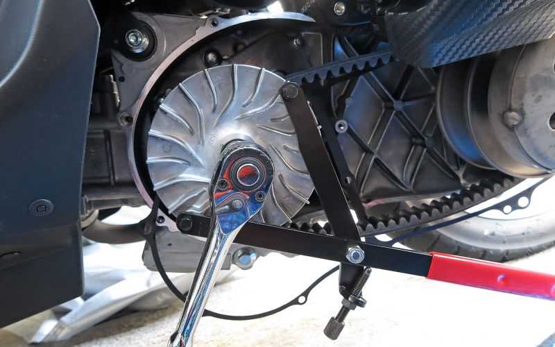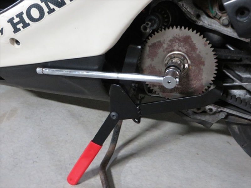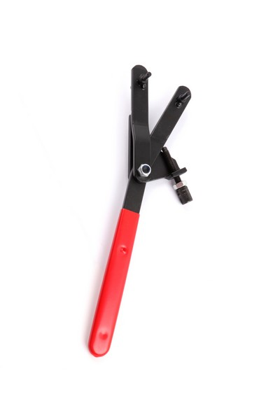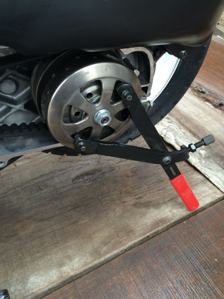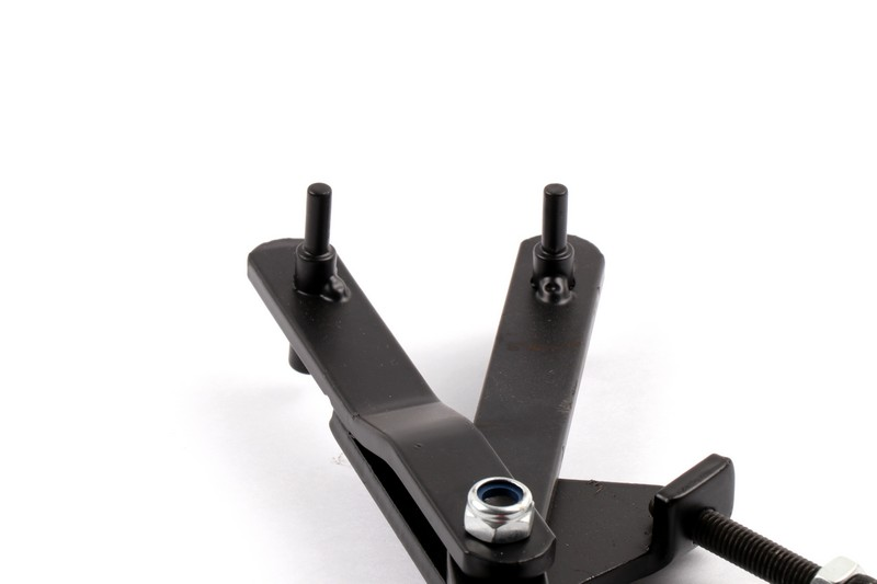 Pulley holder suitable for flywheel and clutch pulleys on a large range of motorcycles.