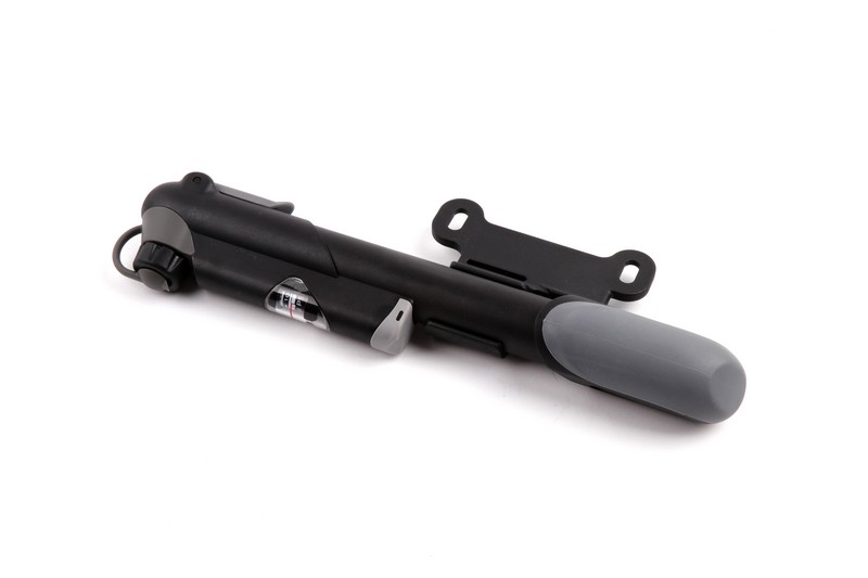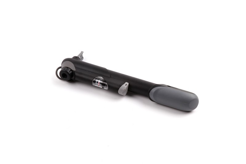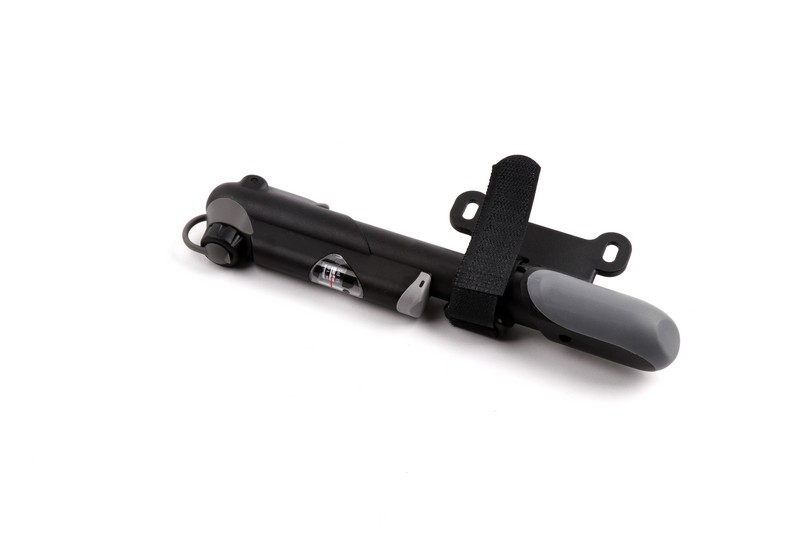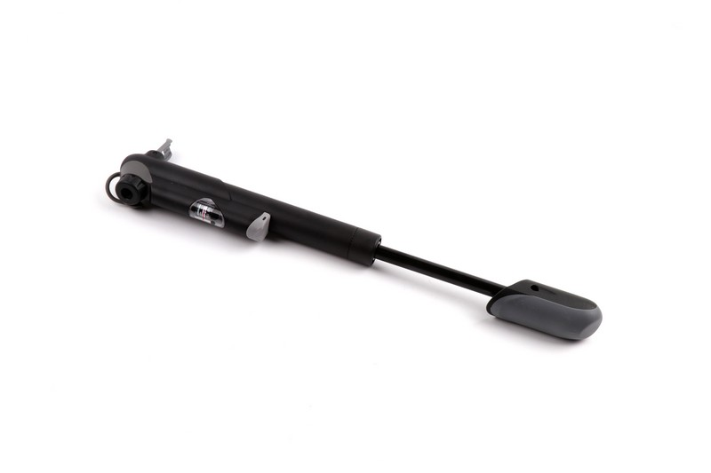 Compact pocket size. W/2-Tone handle. Reversible Presta and Schrader. W/In-line gauge. Length: 220 mm. Accessory: mount bracket x1, fixing screw bolts x2, tie x1. Exclusive: China
