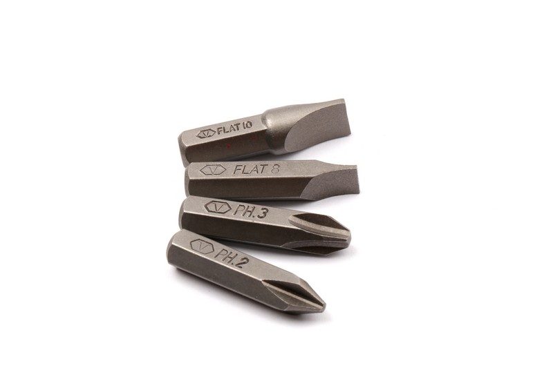 4PCS Impact bits: (+) PH 2 - PH 3 / (-) SL 8 - SL 10,Length: 36 mm. 1PCS Impact Driver: 1/2 "DR (12.7 mm) 1PCS Bit holder: 5/16 "Hex,Length: 165 mm Material: S2. Surface treatment: sandblasting