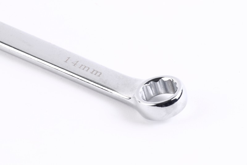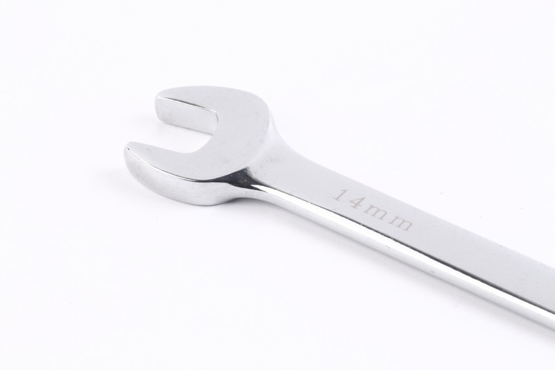 6-point/12-point/all drive function on ring side available. Regular/quick function on open side available .15º on ring sides and open side. Size: 14mm. Length: 193mm Material: Chrome vanadium