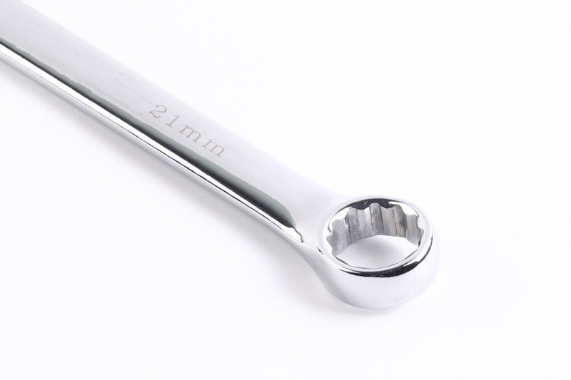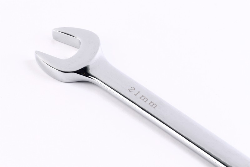 6-point/12-point/all drive function on ring side available. Regular/quick function on open side available .15º on ring sides and open side. Size: 21mm. Length: 271mm Material: Chrome vanadium