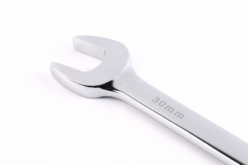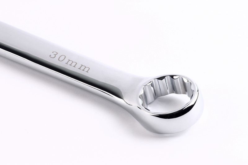 6-point/12-point/all drive function on ring side available. Regular/quick function on open side available .15º on ring sides and open side. Size: 30mm. Length: 395mm Material: Chrome vanadium
