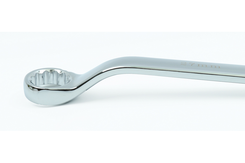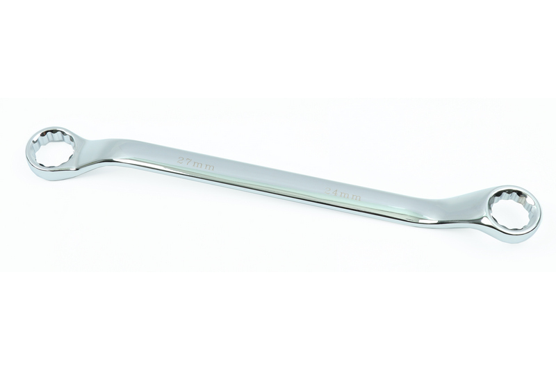 6-point/12-point/all drive function on ring side available Size: 24x27mm. Length: 365mm. 45º on both ring sides Material: Chrome vanadium