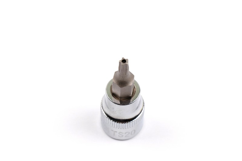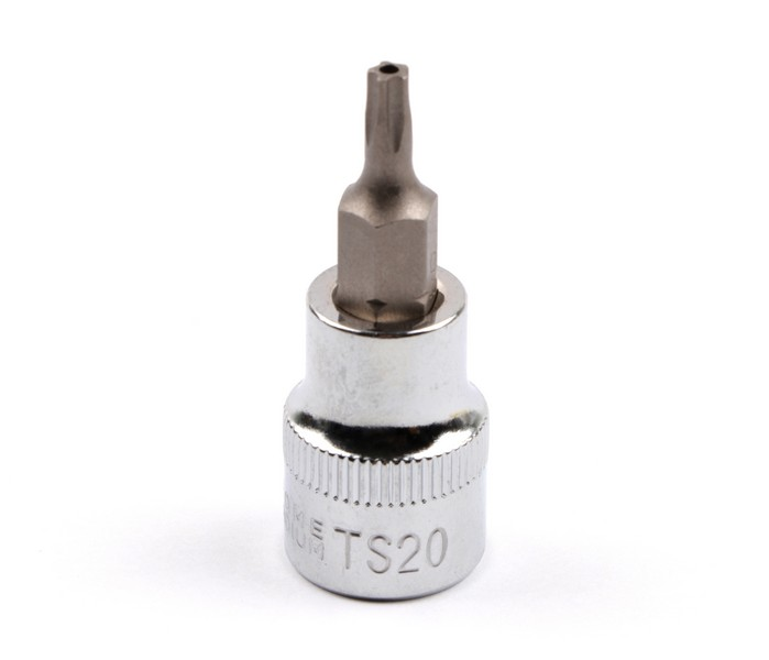 Size: 3/8''DR(9.5mm) x TS20. Length: 48mm. Socket O.D.: 18mm. Axial length: 23mm Material: Bit-S2, Socket- Chrome vanadium