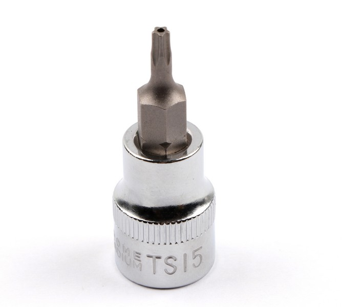 Size: 3/8''DR(9.5mm) x TS15. Length: 48mm. Socket O.D.: 18mm. Axial length: 23mm Material: Bit-S2, Socket- Chrome vanadium