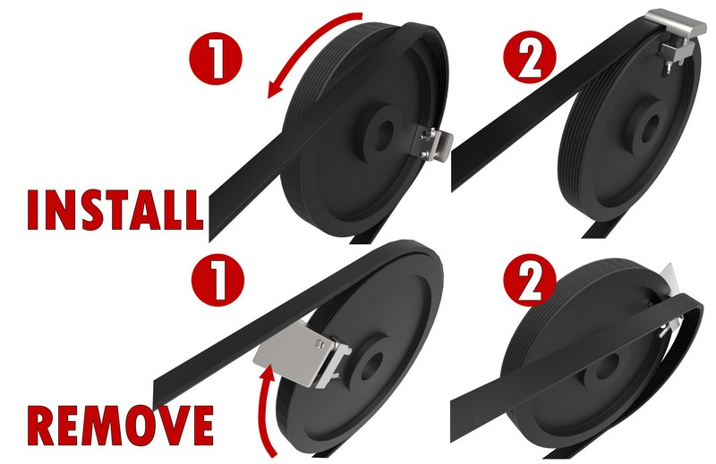 This tool set quickly and easily removal and installation of the new ribbed belts required.