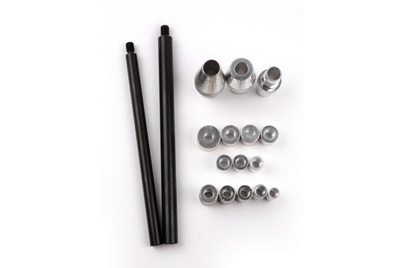 Shaft and bushings provide an accurate fit for eight pilot bearing sizes.