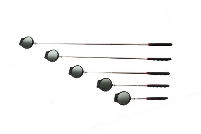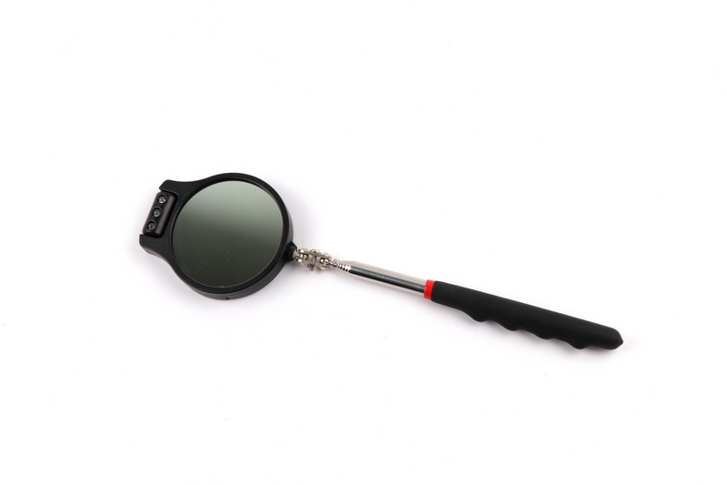 Product Description: Inspection mirror diameter:8cm Telescopic from 30cm to 90cm. The Led light can be rotating. The material is stainless steel.