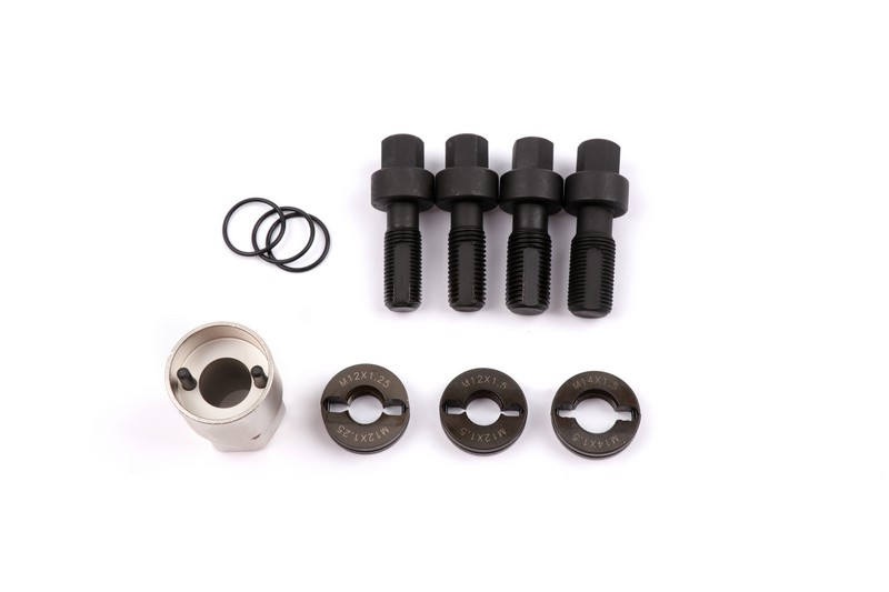 The kit contains three most common wheel stud thread sizes.