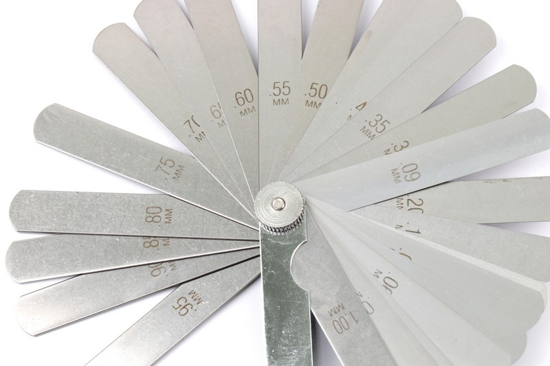 Measuring Mars plug gap, engine valve clearance. Sizes: 0.04~1.00 mm Blades L x W : 3-5/16" x 1/2" (85 x 13mm) Packing: blister card