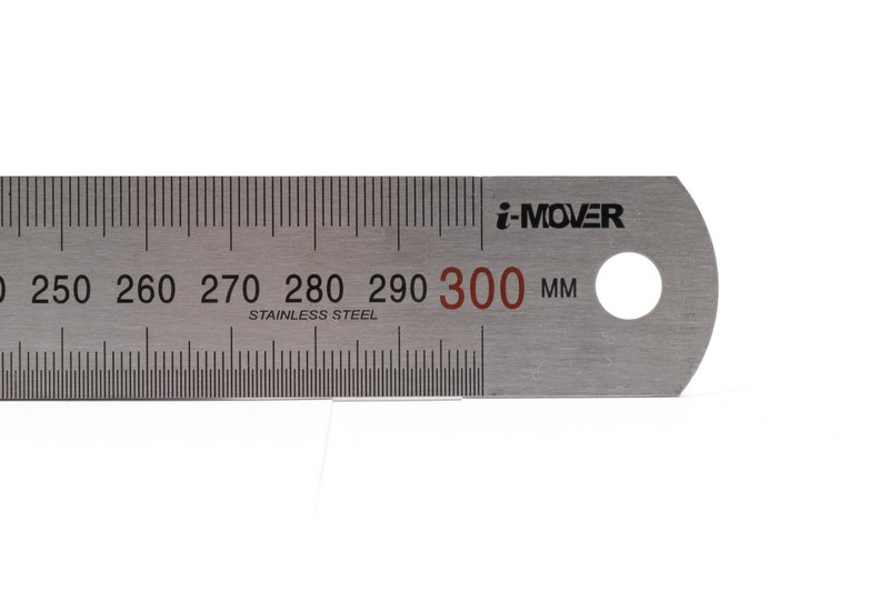 Full length: 32.7cm Measuring range: 0 ~ 300mm / 0 ~ 12in Material: Stainless steel Front print MM / back INCH Packing: Plastic bag