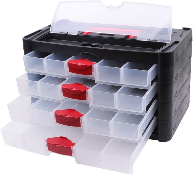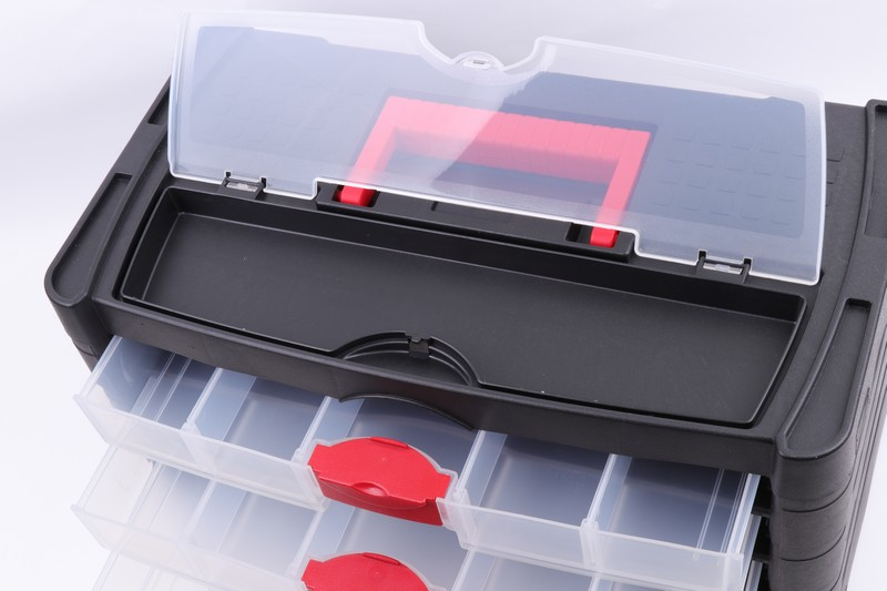 Each drawer has 4 partitions that can be removed, and it is locked so that the drawer will not jump out when moving. Overall size: 415 × 225 × 240 mm Drawer size: 350 × 220 × 45 mm Material: PP Packing: Shrink