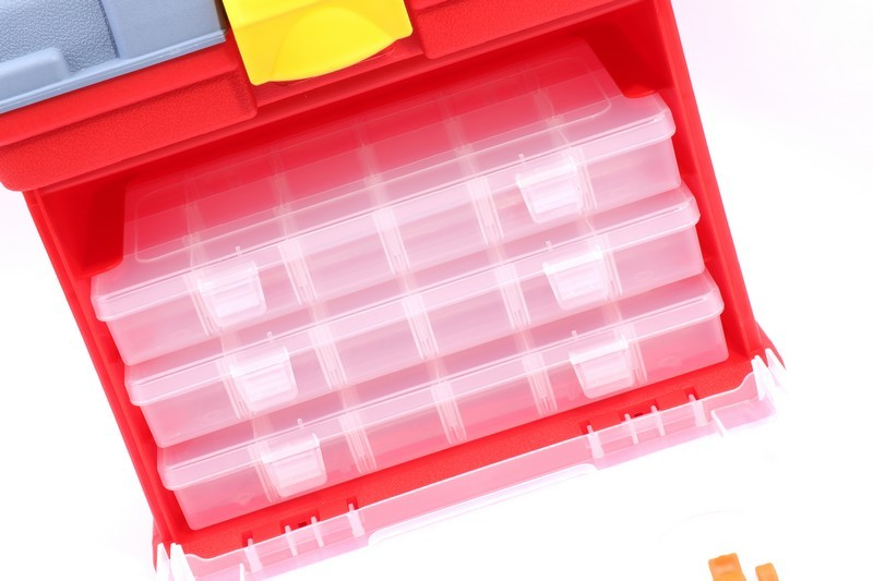 Each of the four boxes has 15 partitions that can be removed, and a lock panel is attached to the front so that the box does not jump out when moving.