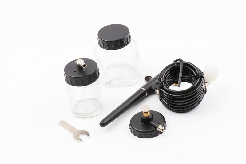 Plastic frame with precise siphoning nozzle & push-button control, a great handy spray set for hobby and art work.