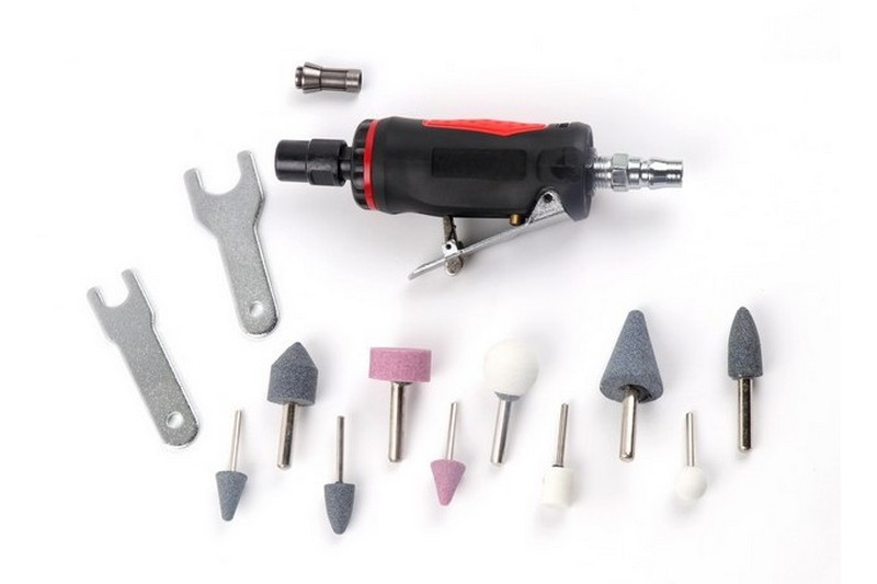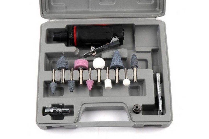 Content: Air Die Grinder Mini×1, Air Coupler×1, Tool×2, 6 Milli Shaft Wheel×5, 3 mm Shaft Wheel×5, 3 Mill Collet×1, Machine Oil×1