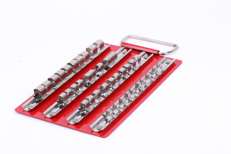 1/4"DR(6.3mm) x10pcs, 3/8"DR.(9.5mm)x20pcs 1/2"DR.(12.7mm)x10pcs Total length: 223X152mm, Material: Steel, Color: red Manufacturing location: Taiwan