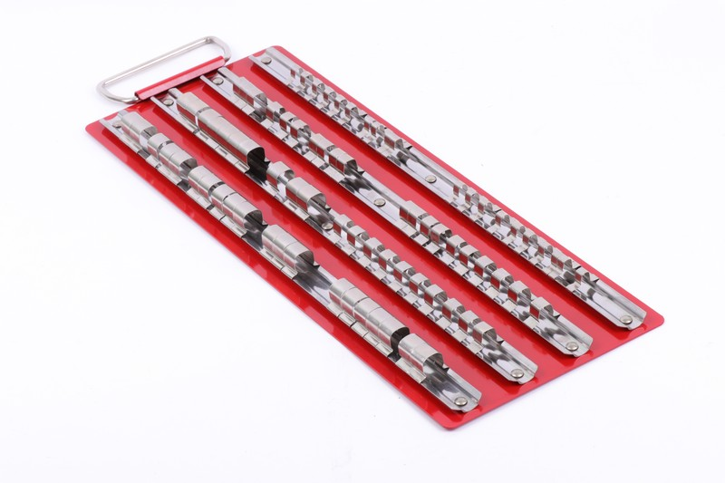 1/4"DR(6.3mm) x20pcs, 3/8"DR.(9.5mm)x30pcs, 1/2"DR.(12.7mm)x300pcs Total length: 418X152mm Material: Steel, Color: red Manufacturing location: Taiwan
