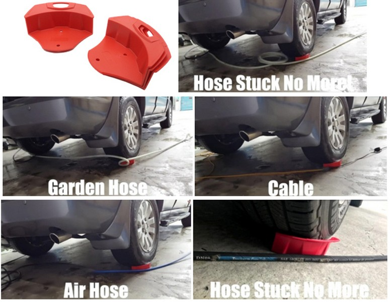 Designed to prevent air and water hoses from trapping under the tyres reducing wear and tear. Helps protect low hanging body work Two piece set with mounting holes where required.