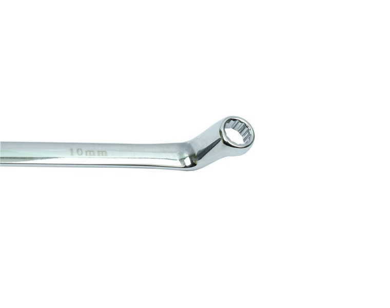 6-point/12-point/all drive function on ring side available Made according to DIN838 standard. Size: 10x12mm. Length: 198mm. 75º on both ring sides. Material: Chrome vanadium