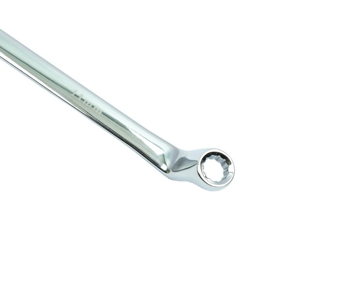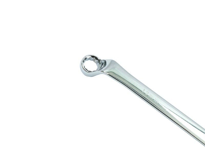 6-point/12-point/all drive function on ring side available Made according to DIN838 standard. Size: 11x13mm. Length: 217mm. 75º on both ring sides. Material: Chrome vanadium