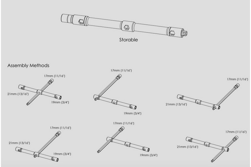Multiple configurations(X,I,L,T type) provides more leverage and twice the torque of a standard lug wrench