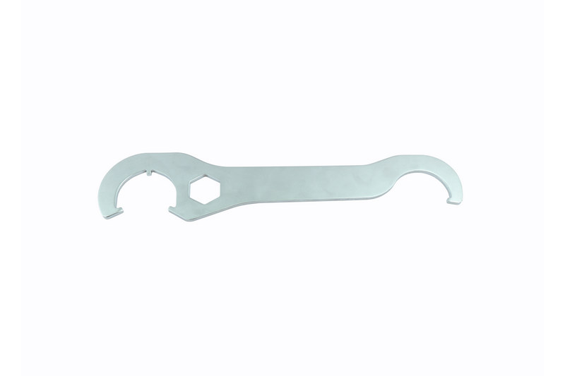 One side is a single hook, the other is a hook spanner with 3 notches for better engagement in the lockrings. The three-hook end will fit 3-notch lockrings
