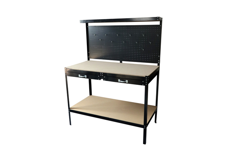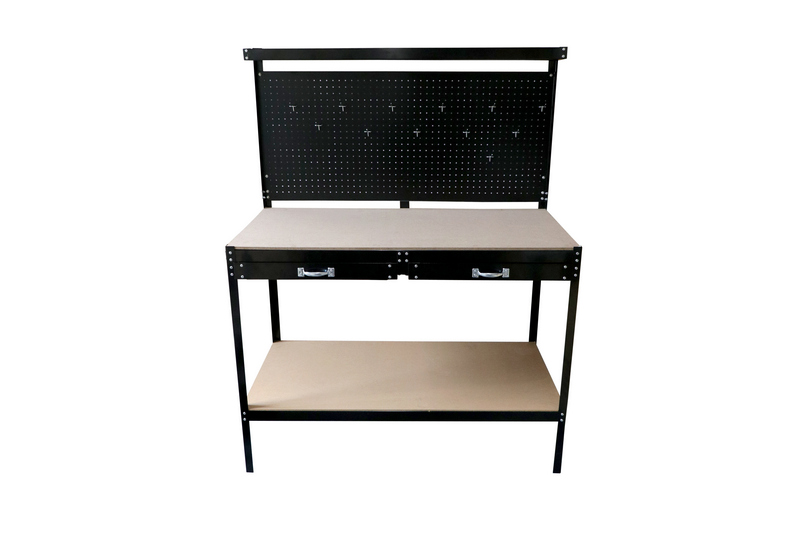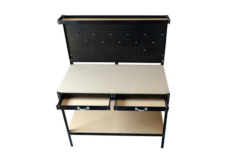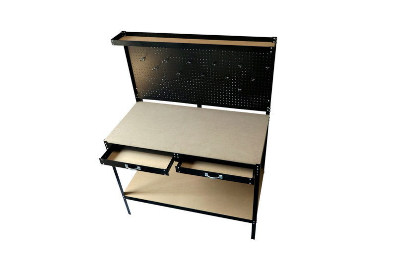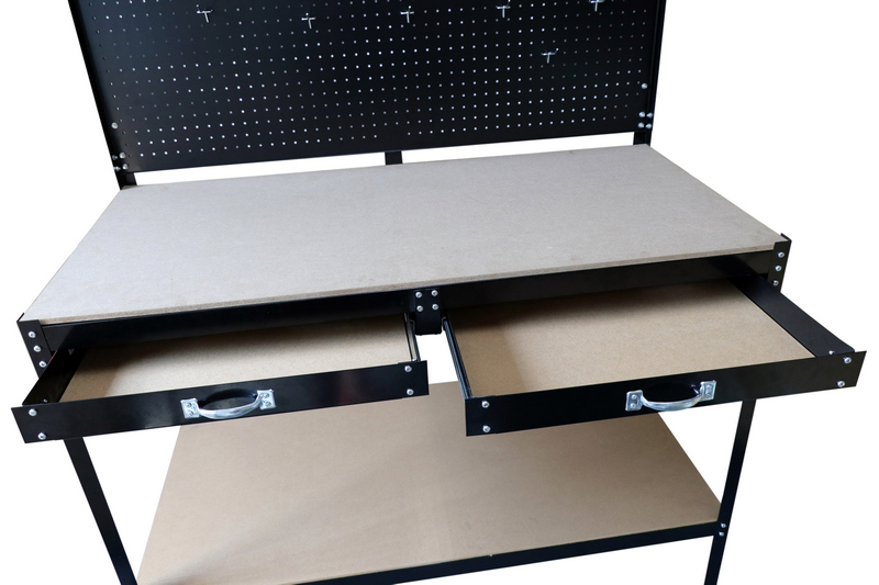 Work size: 1200x600x1550MM, Work highly: 915MM, Work table MDF board: 1200x600x9mm, Bottom MDF board: 1200x600x6MM, Top MDF board:1196x180x5MM, Drawer MDF board:500x370x5MM, Hook MDF board: 1190x605x3MM,