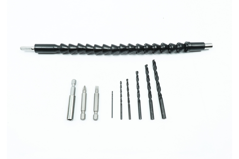 Includes: 1pc AC-DC charger, 1pc magnetic bit holder, 6pcs drill bits, 2pcs 50MM Screw bits, 8pcs sockets(5-6-7-8-9-10-11-12MM), 1pcs flexible connector