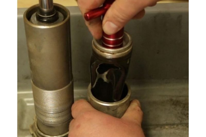 This puller threads can reach onto the Schrader valve on the shock reservoir and make the bladder removal be easier.