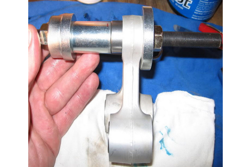 This tool provides 3 necessary drivers to fit the main swing arm needle bearings. Allows user to push bearing into the swing arm easily.