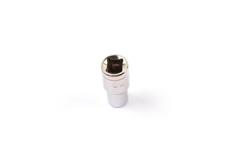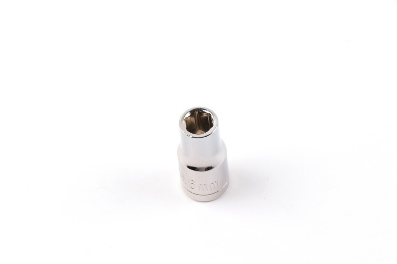 Square drive size: 1/4 "DR (6.3 mm). Socket shape: 6PT. Size: 6 mm Length : 26 mm, Upper outer diameter : 9 mm, Lower outer diameter : 12 mm, Depth : 8 mm Material: Chrome vanadium