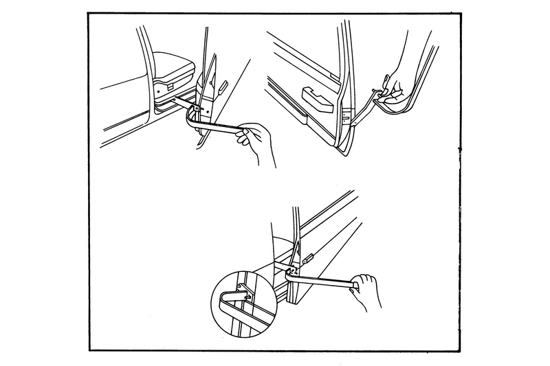 AND CLOSE DOOR UNTIL TOOL ENGAGES DOOR STRIKER.