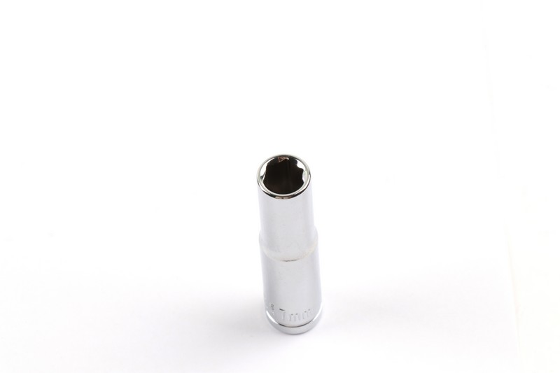 Square drive size: 1/4 "DR (6.3 mm).Socket shape: 6PT. Size: 7 mm Length : 50 mm, Upper outer diameter : 11 mm, Lower outer diameter : 12 mm, Depth : 19 mm Material: Chrome vanadium