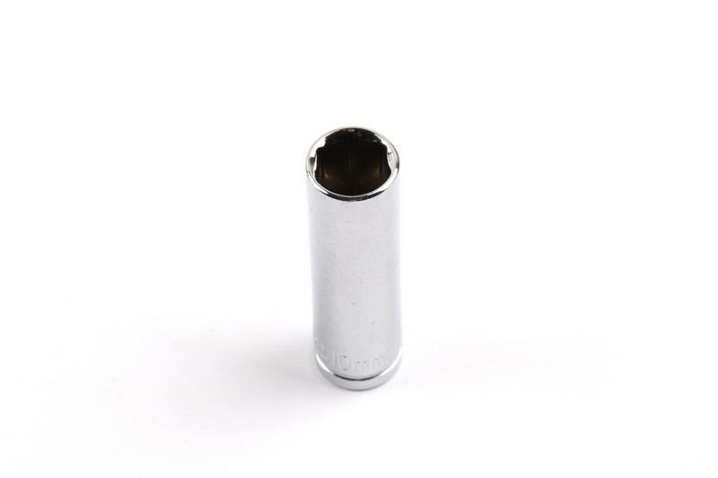Square drive size: 1/4 "DR (6.3 mm).Socket shape: 6PT. Size: 10 mm Length : 50 mm, Upper outer diameter : 14 mm, Lower outer diameter : 14 mm, Depth : 19 mm Material: Chrome vanadium