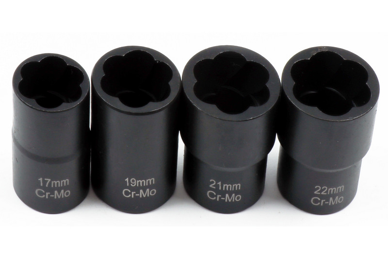 5PCS TWIST SOCKET SET LOCKING WHEEL NUT BOLT STUD EXTRACTOR REMOVERS 17mm 19mm 21mm 22mm 50mm