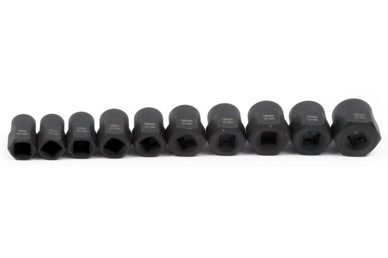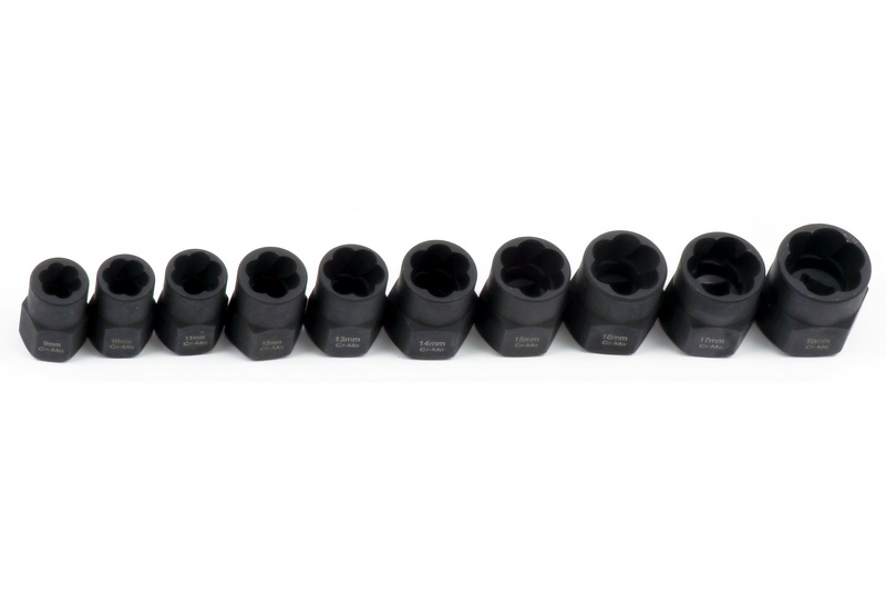 The specially hardened sockets with corrosion protection are specially designed for the removal of damaged nuts and locking wheel nuts.