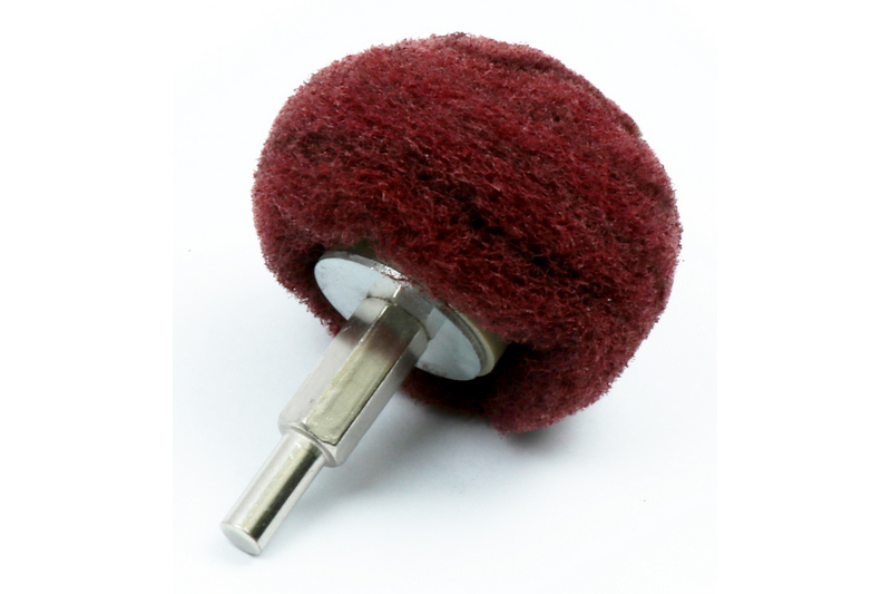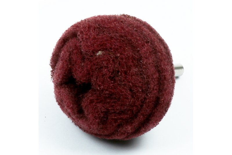50MM ABRASIVE SCOTCH BRITE POLISHING SCUFF BALL, MAROON COLOR, WITH 6MM SHANK