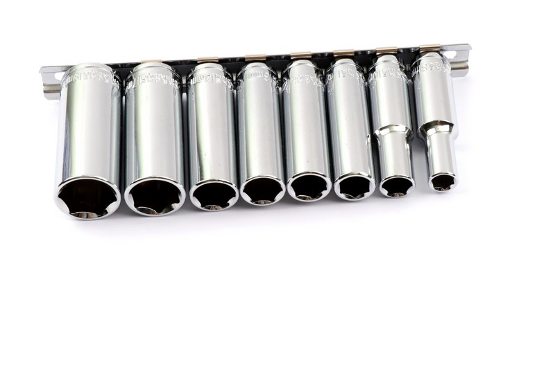 Square drive size: 3/8"(9.5mm) ,Socket shape: 6PT. Length: 63mm Size: 8-10-11-12-13-14-17-19mm Material: Chrome vanadium