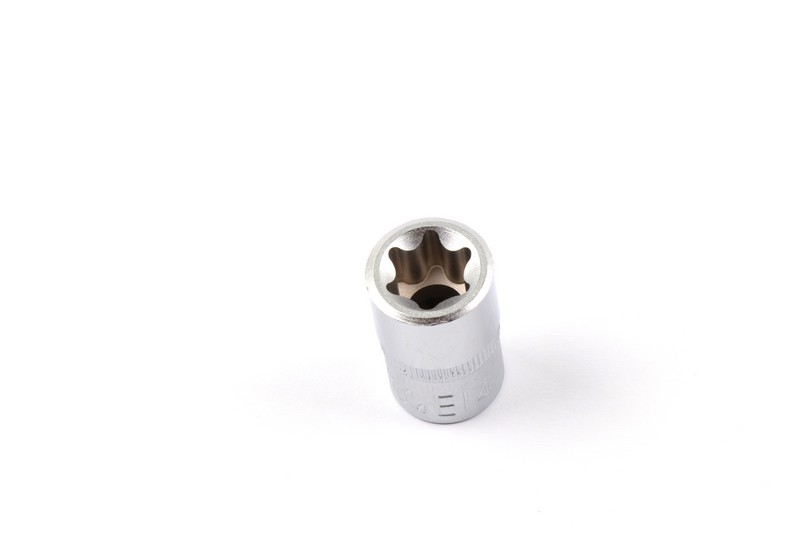 Square drive size: 3/8"(9.5mm) ,Socket shape: Torx. Size: E14 Length : 28 mm, Upper outer diameter : 18 mm, Lower outer diameter : 17 mm Material: Chrome vanadium