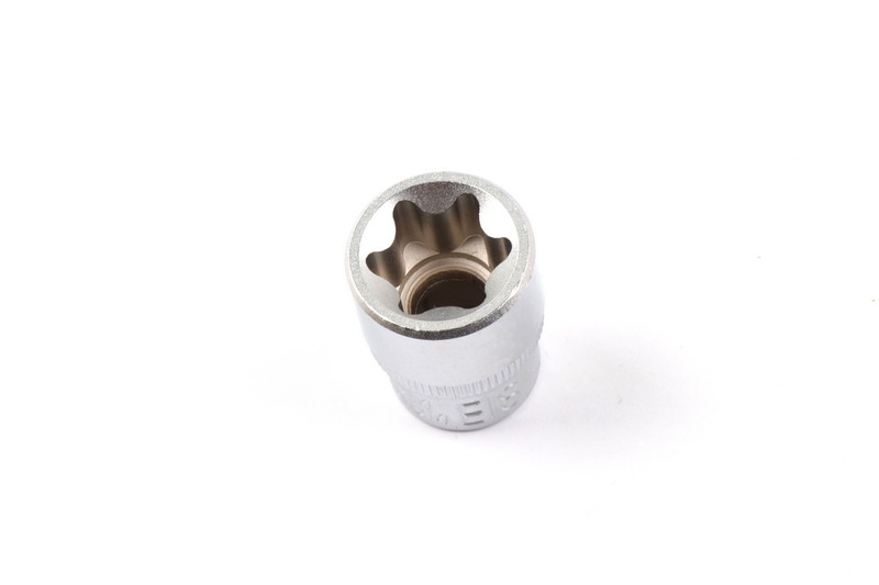 Square drive size: 3/8"(9.5mm) ,Socket shape: Torx. Size: E18 Length : 28 mm, Upper outer diameter : 22 mm, Lower outer diameter : 18 mm Material: Chrome vanadium