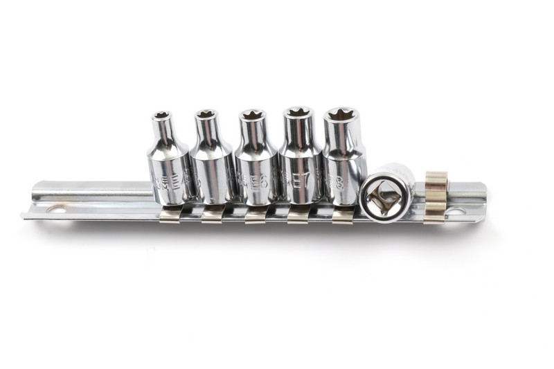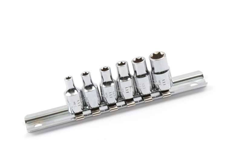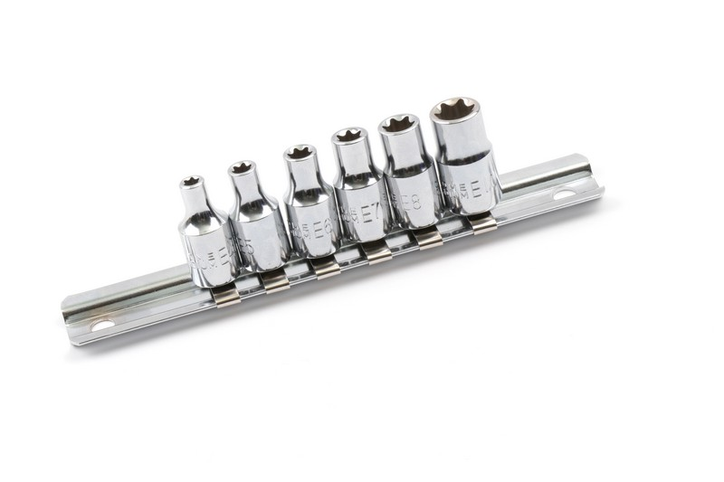 Square drive size: 1/4"(6.3mm) ,Socket shape: Torx. Size: E4-E5-E6-E7-E8-E10 Material: Chrome vanadium