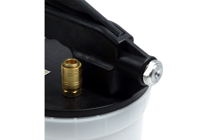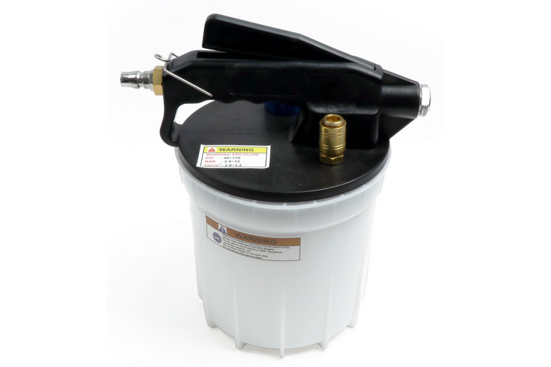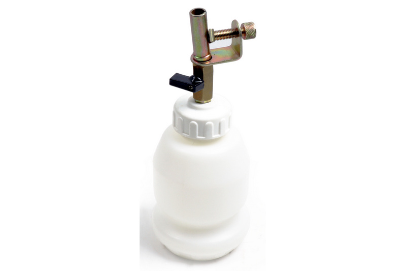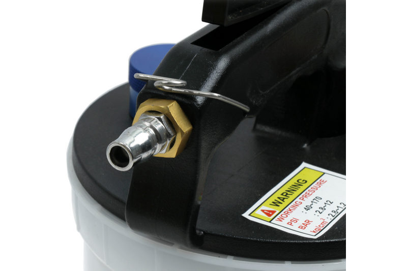 This brake bleeder bleeds and flushes hydraulic brakes and clutches with a vacuum and is simple to use. Large capacity collection reservoir can contain 2 liters of fluid, also includes an automatic master cylinder refill kit with a 1 liter reservoir (safety cup).