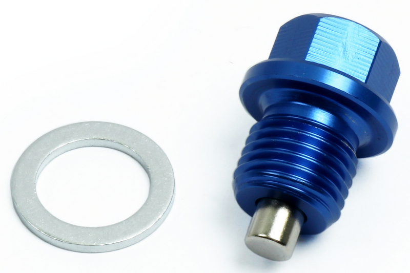 MAGNETIC ENGINE OIL PAN DRAIN BOLT PLUG NUT CRUSH WASHER, M14x1.5 BLUE COLOR