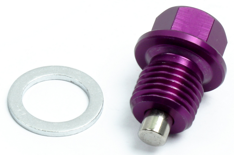 MAGNETIC ENGINE OIL PAN DRAIN BOLT PLUG NUT CRUSH WASHER, M14x1.5 PURPLE COLOR