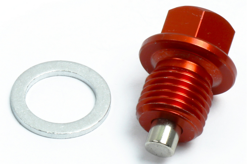 MAGNETIC ENGINE OIL PAN DRAIN BOLT PLUG NUT CRUSH WASHER, M14x1.5 ORANGE COLOR