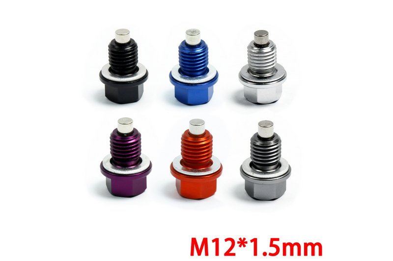 MAGNETIC ENGINE OIL PAN DRAIN BOLT PLUG NUT CRUSH WASHER, M12x1.5 BLACK COLOR