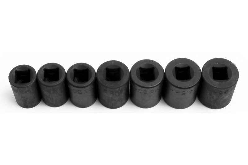 7PC 1/2"DR. TWIST SOCKET SET Cr-Mo Steel , Hardened , Black Finish SIZE: 17 ,18.5 , 20 , 21.5 , 23 , 24.5 , 26mm