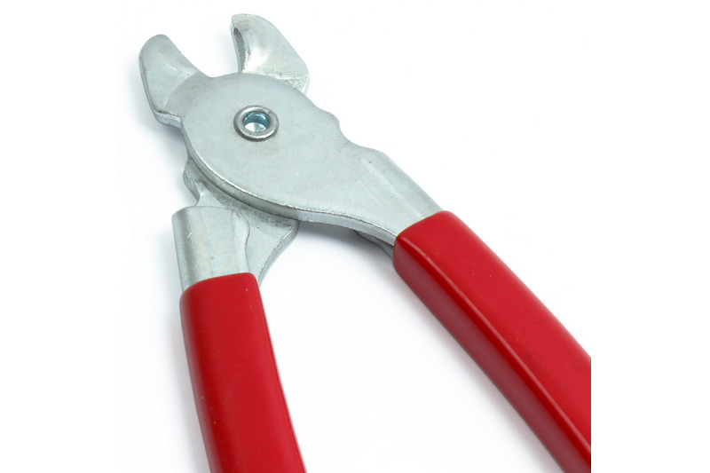 Hog rings are commonly used in auto upholstery, to fasten seat covers down to the cushion. Hog ring pliers have small notches to hold hog rings in place, so they are much easier to use than needle-nose pliers. This set of pliers has cushioned non-slip red grips to protect your hands during the installation of your cover.